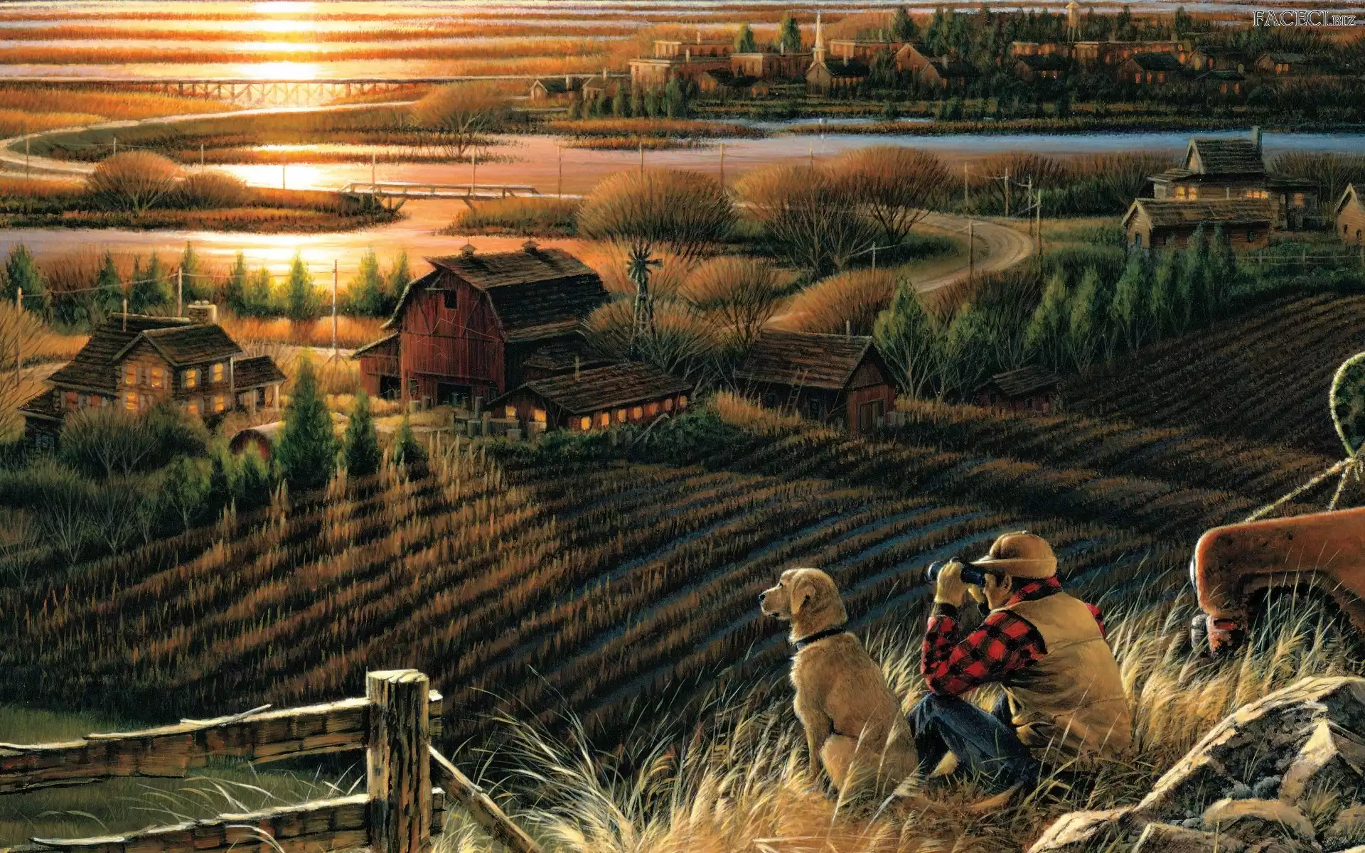 Mężczyzna, Pole, Obraz, Pies - faceci.biz