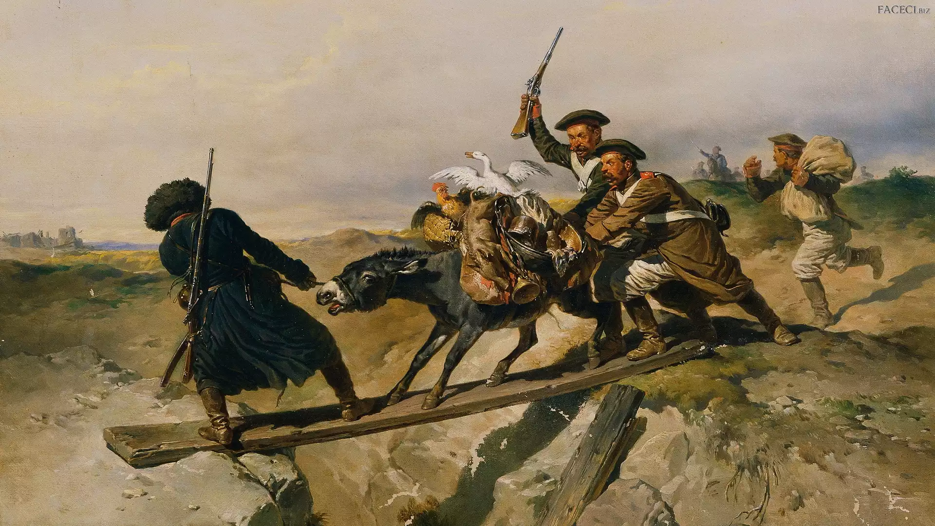 Wojna, Josef Anton Rhinestone Gschwandtner, Malarstwo, Zwierzęta, Ucieczka, Obraz, Żołnierze - faceci.biz |